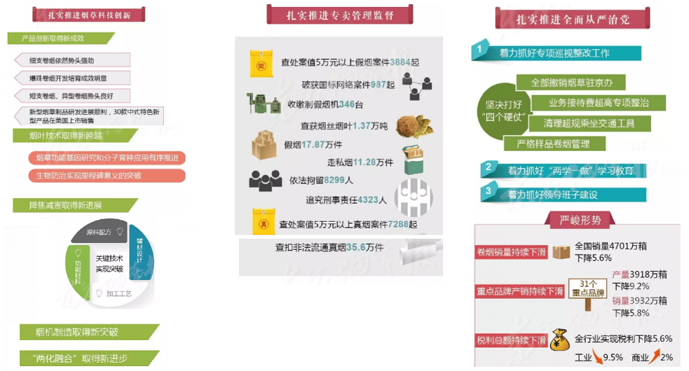 2017年全國煙草工作會議在北京召開,國家局局長凌成興在會上作了題為《堅持穩(wěn)中求進總基調(diào) 爭創(chuàng)穩(wěn)中向好新作為以“兩個超萬億”優(yōu)異成績迎接黨的十九大勝利召開》的報告。